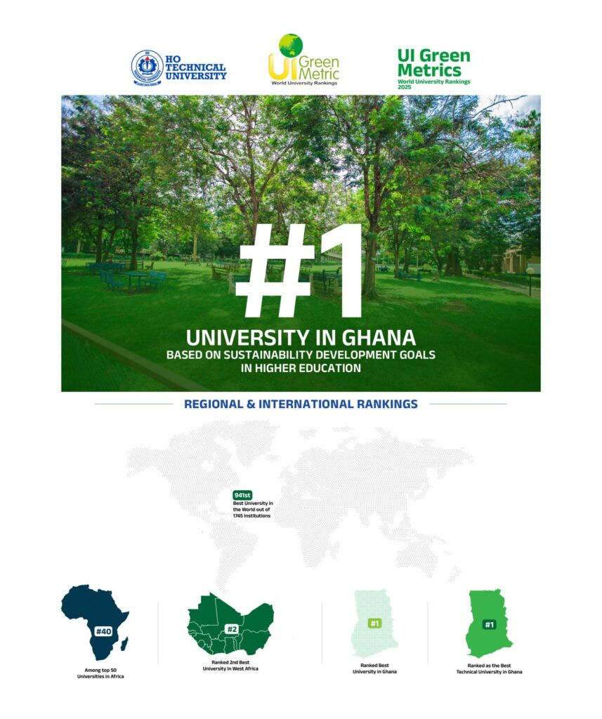 Ho Technical University (HTU) has reaffirmed its position as Ghana’s leading sustainable university while making significant strides on the continental stage in the 2025 UI GreenMetric World University Rankings.